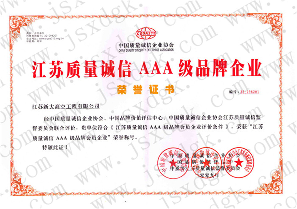 江蘇省高空行業(yè)五十強(qiáng)行業(yè)證書(shū)